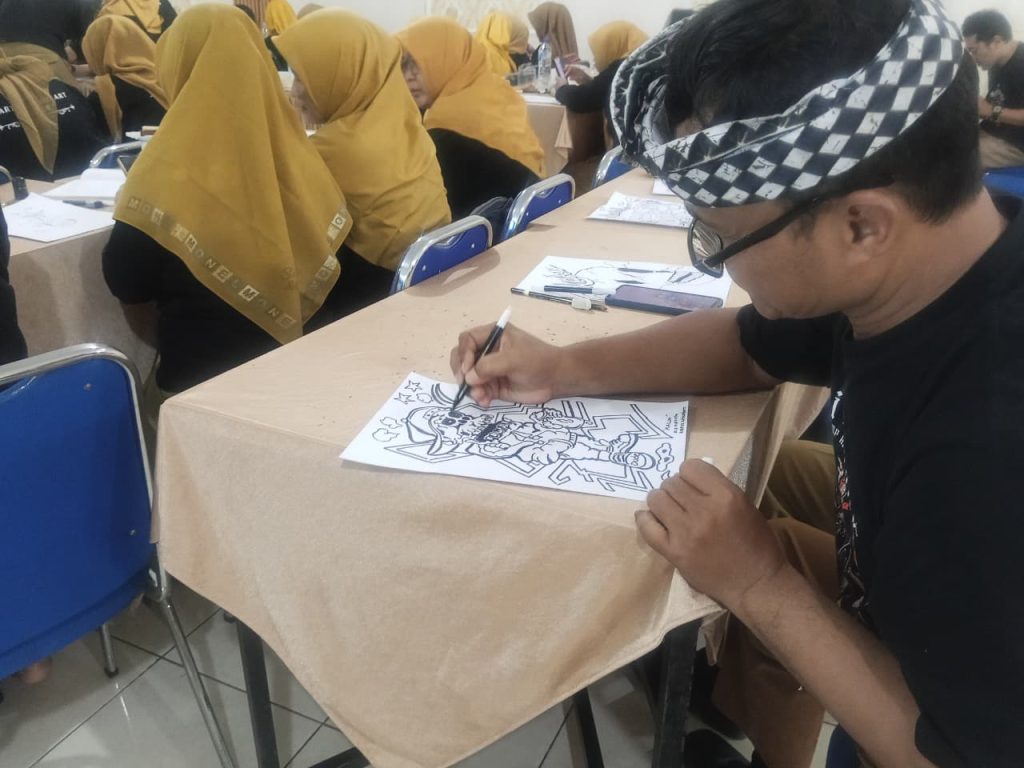 Pada kesempatan kali ini narasumber diklat Febrian Ery Prabowo Guru Seni Budaya SMP Negeri 3 Ngadirojo menyampaikan cara Membuat Poster Memanfaatkan Web Photopea dengan Teknik Manual dan Digital. Tahapan dari cara membuat poster tersebut diantaranya, ide dan pembuatan gambar/drawing, penintaan/inking, scanning, pewarnaan/colouring, finishing dan pengumpulan karya. Selanjutnya diklat diisi dengan goresan pensil di selembar kertas yang disediakan panitia, kemudian digunakan untuk praktik semua peserta diklat. Karya masing-masing guru dikirim dan dikumpulkan di group KKG Seni Budaya Wonogiri.
