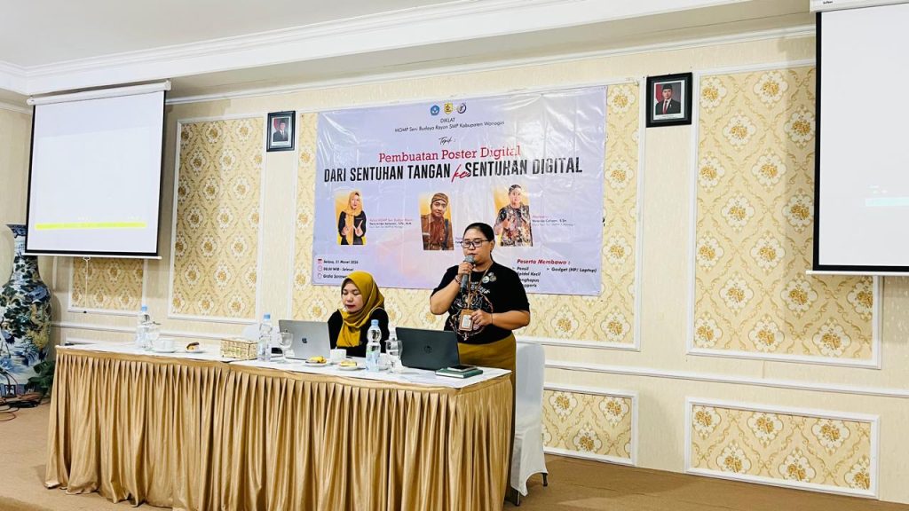 Pada hari Selasa, 31 Maret 2026 MGMP Seni Budaya mengadakan Diklat dengan topik Pembuatan Poster Digital Dari Sentuhan Tangan ke Sentuhan Digital dari jam 08.00 wib sampai dengan selesai bertempat di Rumah Makan Saraswati Wonogiri. Diklat dipandu pembawa acara Veronika Cahyani Guru Seni Budaya dari SMP Negeri 5 Wonogiri dan dilanjutkan menyanyikan lagu Indonesia Raya dengan dirigen Ning Sugandini guru Seni Budaya SMP Negeri 1 Batuwarno.