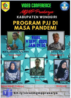 WonogiriVideo conference MGMP Prakarya Subrayon 01 dilaksanakan pada hari Rabu tanggal 9 September 2020  secara virtual.