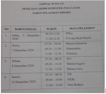 Jadwal PAS Susulan
